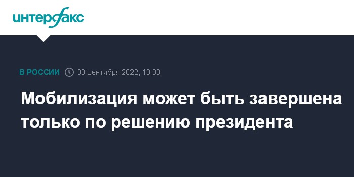 Москва. 30 сентября. INTERFAX.RU - Частичная мобилизация может быть завершена только по решению президента России, сообщил правительственный портал "Объясняем.рф".