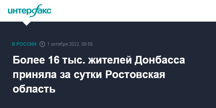 Москва. 1 октября. INTERFAX.RU - Через пункты пропуска в Ростовскую область с территории Донбасса за последние сутки прибыли более 16 тыс. человек, сообщает пресс-служба регионального погрануправления ФСБ в пятницу.