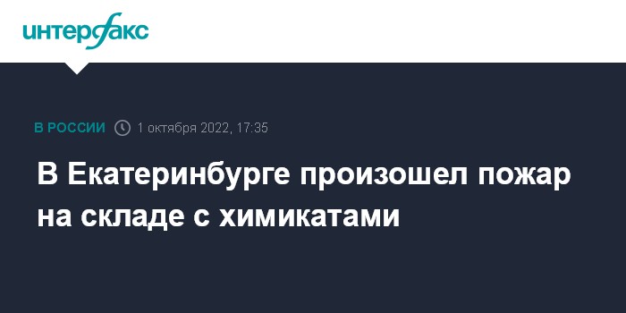 Москва. 1 октября. INTERFAX.RU - Пожар на складе с химикатами произошел в Екатеринбурге, сообщила в субботу пресс-служба МЧС региона.