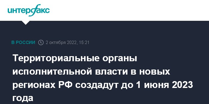 Территориальные органы исполнительной власти в новых регионах РФ создадут до 1 июня 2023 года