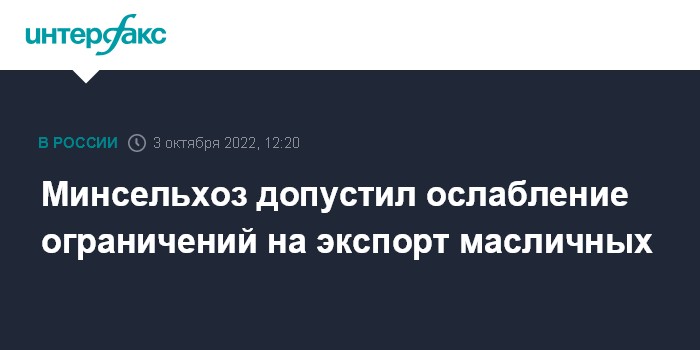 Минсельхоз допустил ослабление ограничений на экспорт масличных