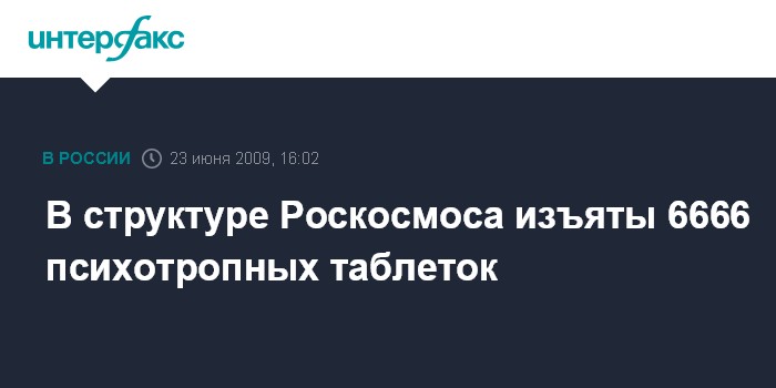 В структуре Роскосмоса изъяты 6666 психотропных таблеток