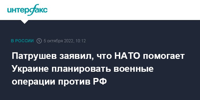 Москва. 5 октября. INTERFAX.RU - Секретарь Совбеза России Николай Патрушев считает, что на Украине против РФ воюет весь блок НАТО, который поставляет Киеву оружие, разведданные, обучает военных и помогает планировать операции.