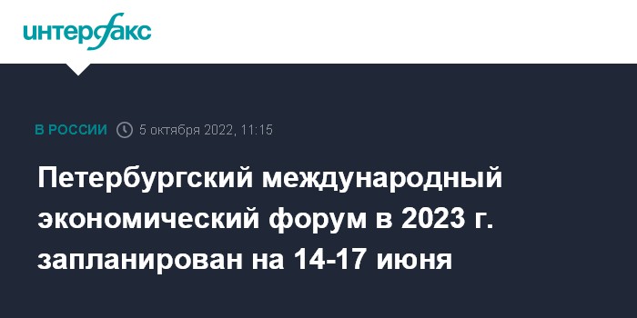 Петербургский международный экономический форум в 2023 г. запланирован на 14-17 июня