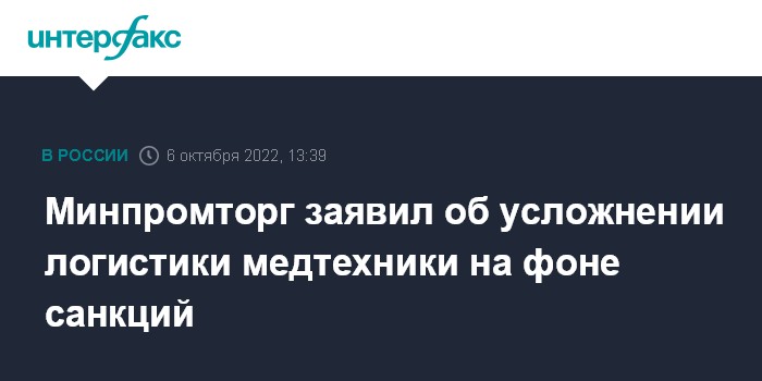 Минпромторг заявил об усложнении логистики медтехники на фоне санкций