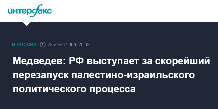 Каир. 23 июня. INTERFAX.RU - Президент Дмитрий Медведев, выступая в штаб-квартире Лиги арабских государств в Каире, высказался за скорейшее возобновление палестино-израильских переговоров с учетом всех ранее достигнутых договоренностей.