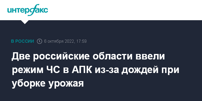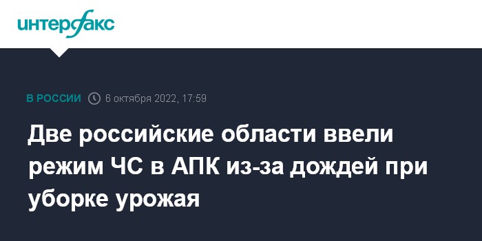Две российские области ввели режим ЧС в АПК из-за дождей при уборке урожая