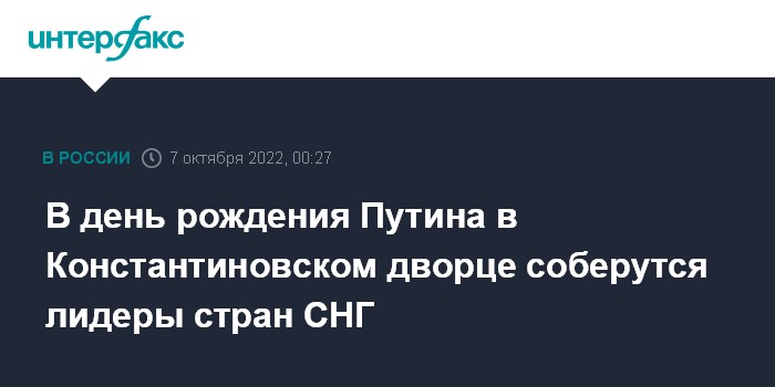 Москва. 7 октября. INTERFAX.RU - Президент РФ Владимир Путин в свой день рождения собирает в Константиновском дворце в Стрельне неформальный саммит СНГ.