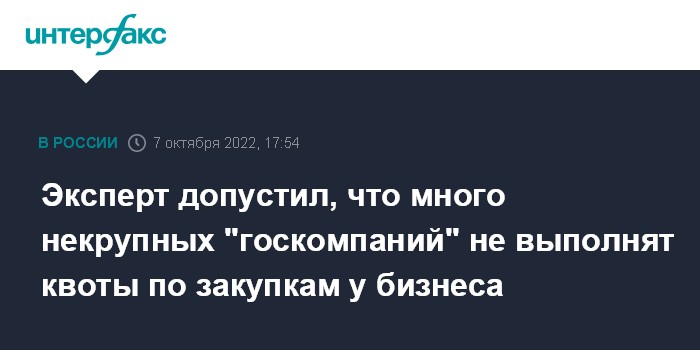Эксперт допустил, что много некрупных "госкомпаний" не выполнят квоты по закупкам у бизнеса