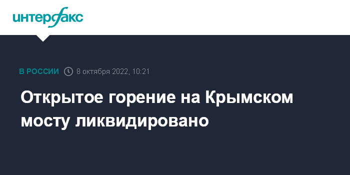 Открытое горение на Крымском мосту ликвидировано