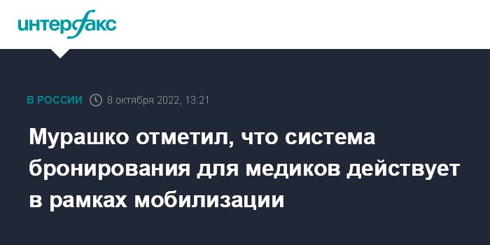 Мурашко отметил, что система бронирования для медиков действует в рамках мобилизации