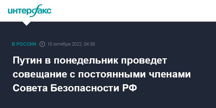 Путин в понедельник проведет совещание с постоянными членами Совета Безопасности РФ