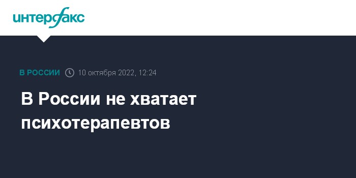 Москва. 10 октября. INTERFAX.RU - В России недостаточно психотерапевтов, поскольку большинство специалистов работает в частном секторе, заявила на пресс-конференции гендиректор НМИЦ психиатрии и наркологии имени Сербского Минздрава России Светлана Шпорт.