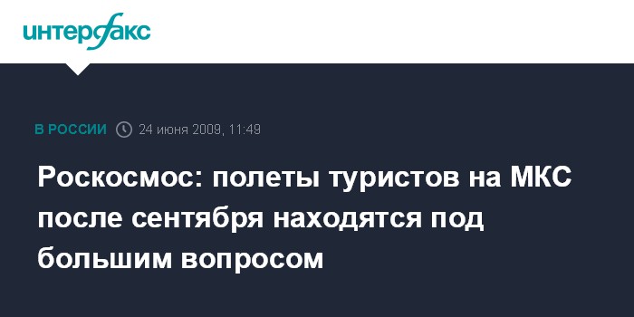 Москва. 24 июня. INTERFAX.RU - После предстоящей в сентябре отправки на МКС космического туриста в туристической космической деятельности может наступить перерыв, считает глава Роскосмоса Анатолий Перминов.