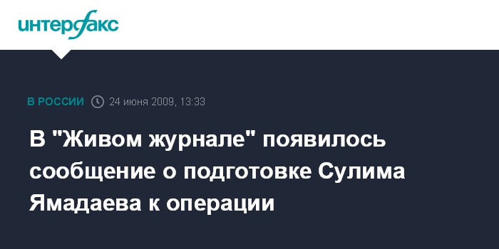 В "Живом журнале" появилось сообщение о подготовке Сулима Ямадаева к операции