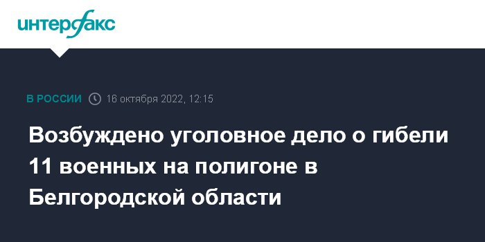"В результате происшествия на полигоне в Белгородской области от огнестрельных ранений погибли 11 человек, еще 15 получили ранения", - говорится в пресс-релизе.