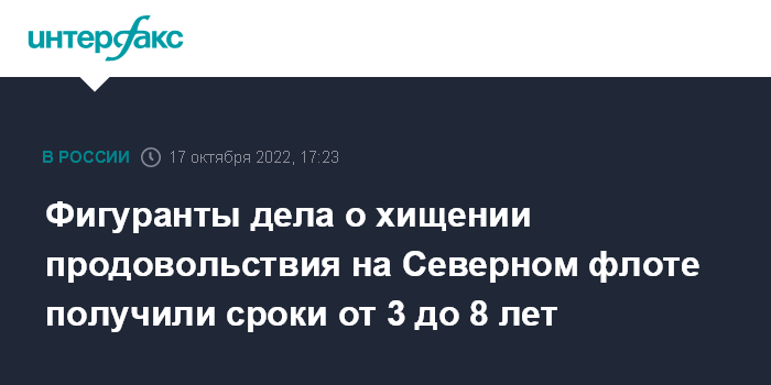 Фигуранты дела о хищении продовольствия на Северном флоте получили сроки от 3 до 8 лет