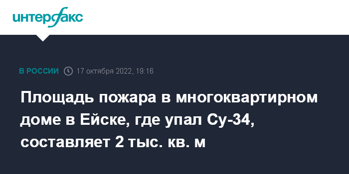 Площадь пожара в многоквартирном доме в Ейске, где упал Су-34, составляет 2 тыс. кв. м