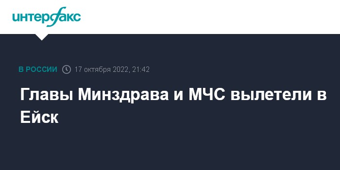 Москва. 17 октября. INTERFAX.RU - Министр здравоохранения РФ Михаил Мурашко и глава МЧС Александр Куренков вылетели в Ейск (Краснодарский край) для ликвидации последствий крушения военного самолёта и оказания помощи пострадавшим жителям девятиэтажного дома, загоревшегося после авиакатастрофы.