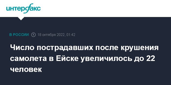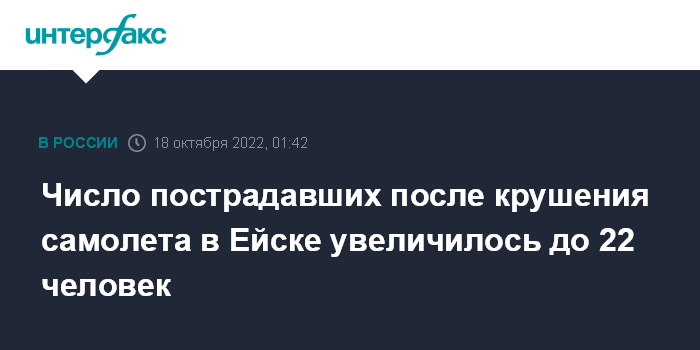 Число пострадавших после крушения самолета в Ейске увеличилось до 22 человек