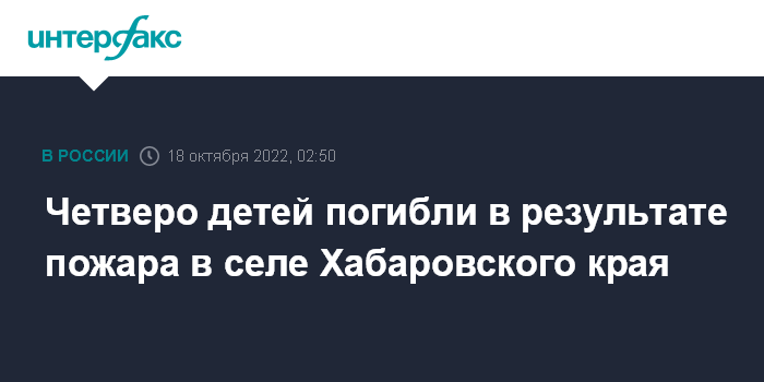 Москва. 18 октября. INTERFAX.RU - Четверо детей погибли в результате пожара в селе Синда Нанайского района Хабаровского края, сообщает пресс-служба Следственного управления СКР по региону во вторник.