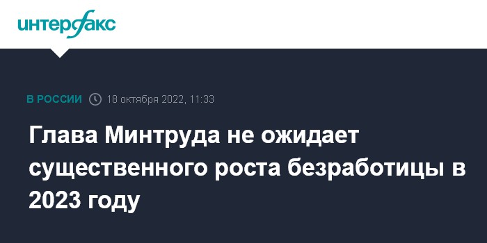 Глава Минтруда не ожидает существенного роста безработицы в 2023 году