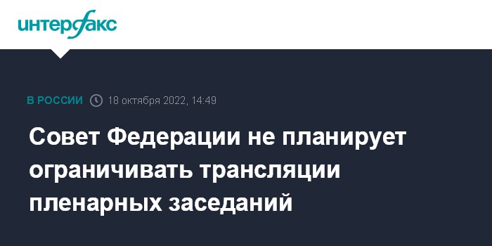 Москва. 18 октября. INTERFAX.RU - Совет Федерации не планирует по примеру Госдумы ограничивать прямые трансляции своих пленарных заседаний, сообщил "Интерфаксу" источник в верхней палате парламента.