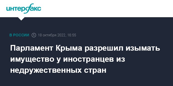Парламент Крыма разрешил изымать имущество у иностранцев из недружественных стран