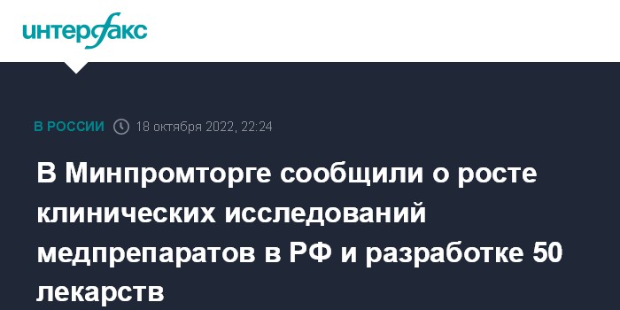 В Минпромторге сообщили о росте клинических исследований медпрепаратов в РФ и разработке 50 лекарств