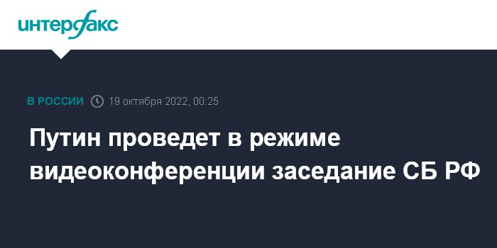 Москва. 19 октября. INTERFAX.RU - Президент России Владимир Путин в среду, 19 октября проведет в режиме видеоконференции заседание Совета Безопасности Российской Федерации, сообщила пресс-служба Кремля.