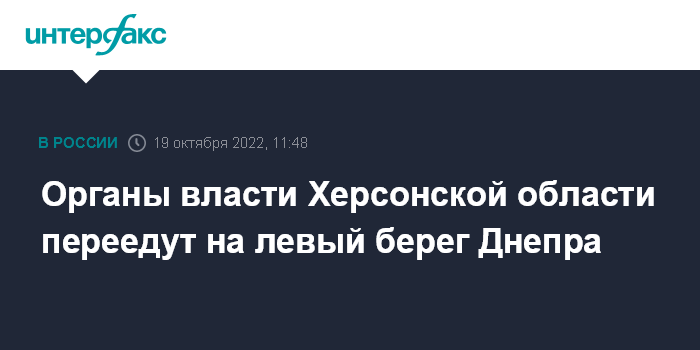 Москва. 19 октября. INTERFAX.RU - Въезд в Херсонскую область запрещается на семь дней для гражданских лиц, региональные органы власти переедут на левый берег Днепра, сообщил врио губернатора Владимир Сальдо.