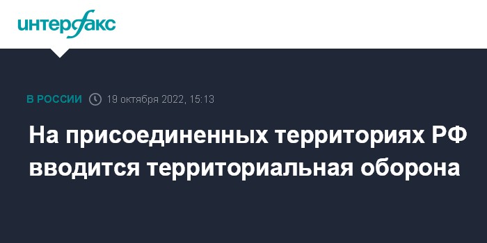 Москва. 19 октября. INTERFAX.RU - Территориальная оборона будет введена на территориях присоединенных субъектов РФ, сообщается на сайте Кремля.