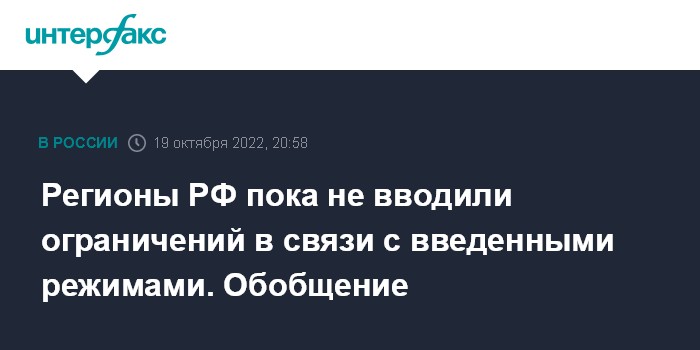 Регионы РФ пока не вводили ограничений в связи с введенными режимами. Обобщение