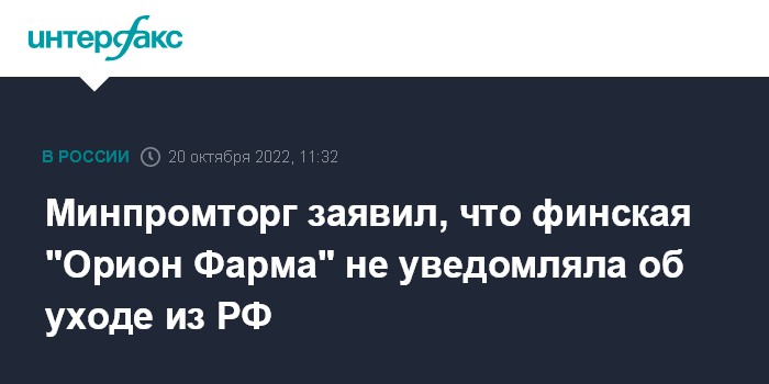 Минпромторг заявил, что финская "Орион Фарма" не уведомляла об уходе из РФ