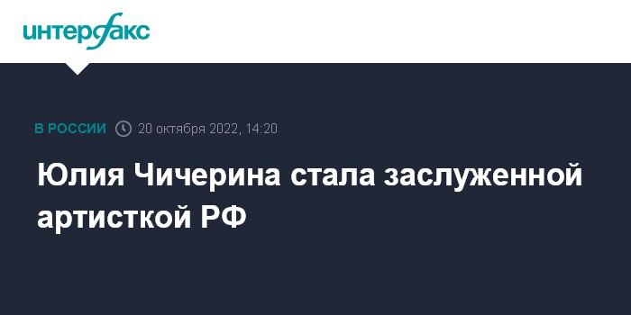 Москва. 20 октября. INTERFAX.RU - Певице Юлии Чичериной присвоено звание заслуженный артист РФ.