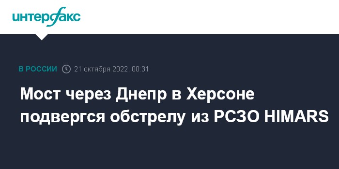 Москва. 21 октября. INTERFAX.RU - Мост через Днепр в Херсоне вновь подвергся ракетному обстрелу, сообщил журналистам представитель экстренных служб.