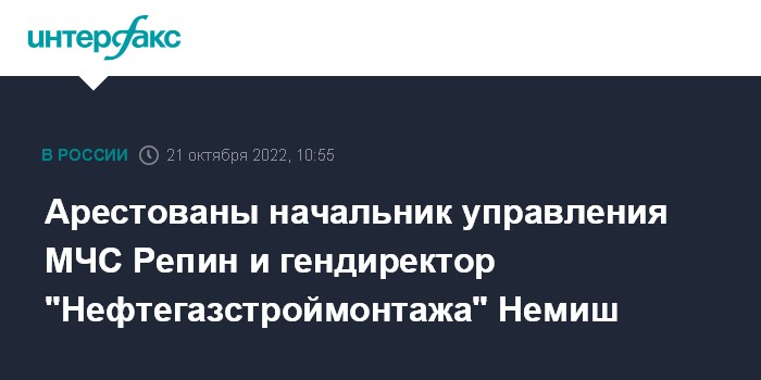 Арестованы начальник управления МЧС Репин и гендиректор "Нефтегазстроймонтажа" Немиш
