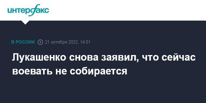Лукашенко снова заявил, что сейчас воевать не собирается