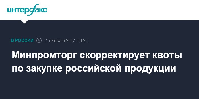 Москва. 21 октября. INTERFAX.RU - Минпромторг планирует скорректировать нормы, регламентирующие порядок выполнения квот по обязательной закупке госзаказчиками и госкомпаниями продукции российского происхождения. Проект соответствующего правительственного постановления опубликован на портале проектов нормативных правовых актов.