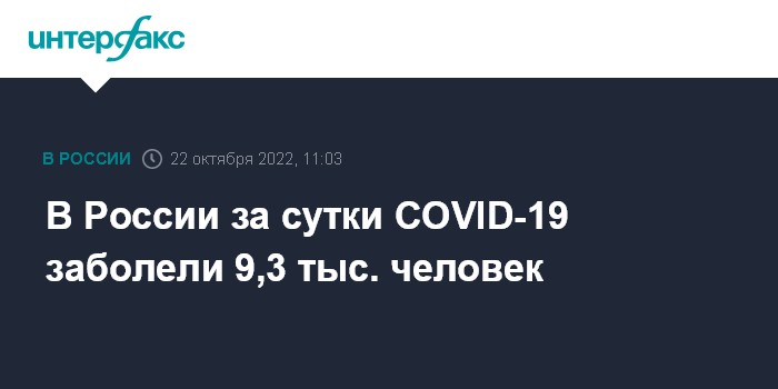 В России за сутки COVID-19 заболели 9,3 тыс. человек