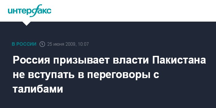 Москва. 25 июня. INTERFAX.RU - В Москве призывают пакистанские власти воздержаться от контактов с движением "Талибан".