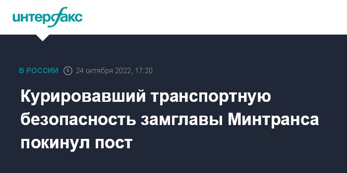 Курировавший транспортную безопасность замглавы Минтранса покинул пост
