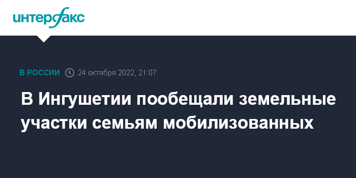 В Ингушетии пообещали земельные участки семьям мобилизованных