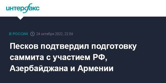 Песков подтвердил подготовку саммита с участием РФ, Азербайджана и Армении