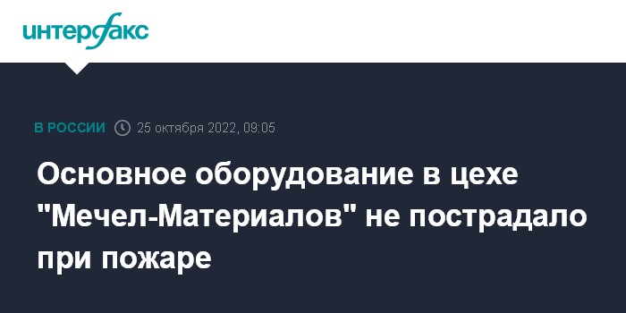 Москва. 25 октября. INTERFAX.RU - Основное оборудование в цехе ООО "Мечел-Материалы" (входит в группу "Мечел"), расположенном на территории Челябинского меткомбината, не пострадало при пожаре, который произошел накануне вечером, сообщили "Интерфаксу" в пресс-службе ООО.