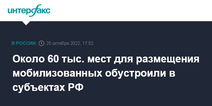 "В настоящее время с помощью субъектов РФ обустроено около 60 тыс. мест для размещения мобилизованных", - сказал Собянин в ходе заседания координационного совета при правительстве по обеспечению потребностей Вооруженных сил РФ.