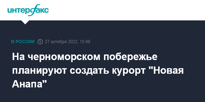 "Правительством России по указанию президента Владимира Путина будет реализован масштабный проект по строительству курорта "Новая Анапа" на черноморском побережье. Это позволит создать до 15 тысяч гостиничных номеров, дать региону тысячи новых рабочих мест и принимать на курортах Краснодарского края дополнительно более 3 млн туристов ежегодно из всех российских субъектов, включая граждан 4 новых регионов", - цитирует слова Чернышенко его пресс-служба.