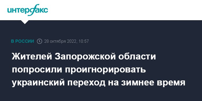 Жителей Запорожской области попросили проигнорировать украинский переход на зимнее время