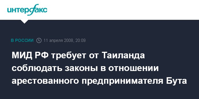 "Было подчеркнуто, что российская сторона намерена добиваться неукоснительного соблюдения в отношении В.Бута соответствующих положений таиландского законодательства и норм международного права", - говорится в сообщении российского внешнеполитического ведомства, распространенном в пятницу в Москве.