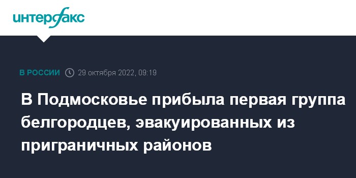 Москва. 29 октября. INTERFAX.RU - В субботу утром в Подмосковье прибыли 398 жителей Белгородской области, эвакуированных из приграничных районов, сообщает пресс-служба губернатора и правительства Московской области.